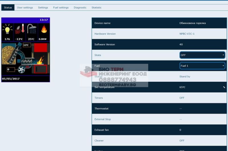 NPBC-V4E - Електронен контролер за пелетни горелки с цветен дисплей